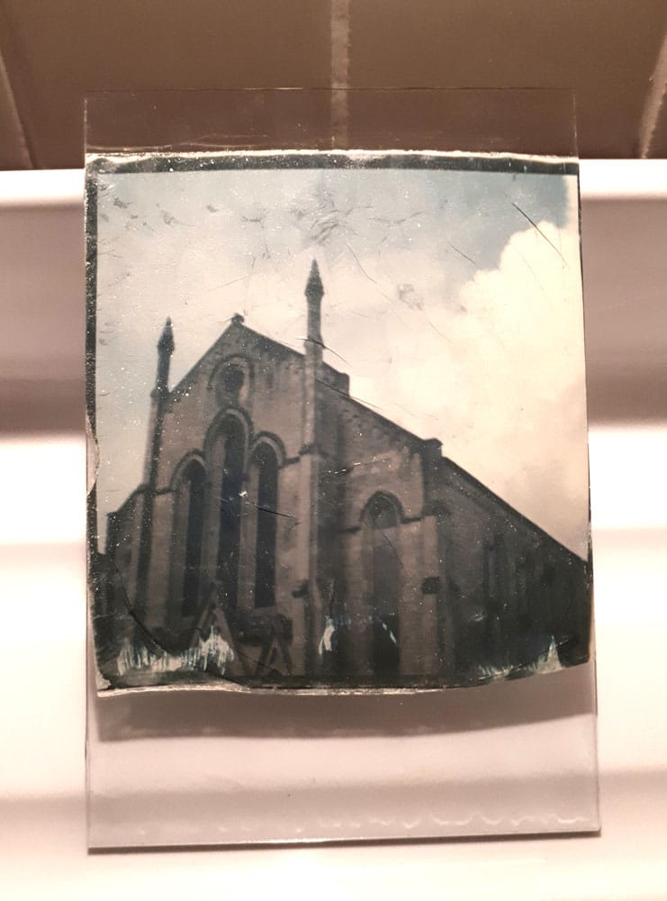 Following a night of self-nagging dreams, I woke early the next morning and decided to make my first attempt at an emulsion lift using a sheet of a black and white Impossible Project film I had exposed very badly. This is the result:
