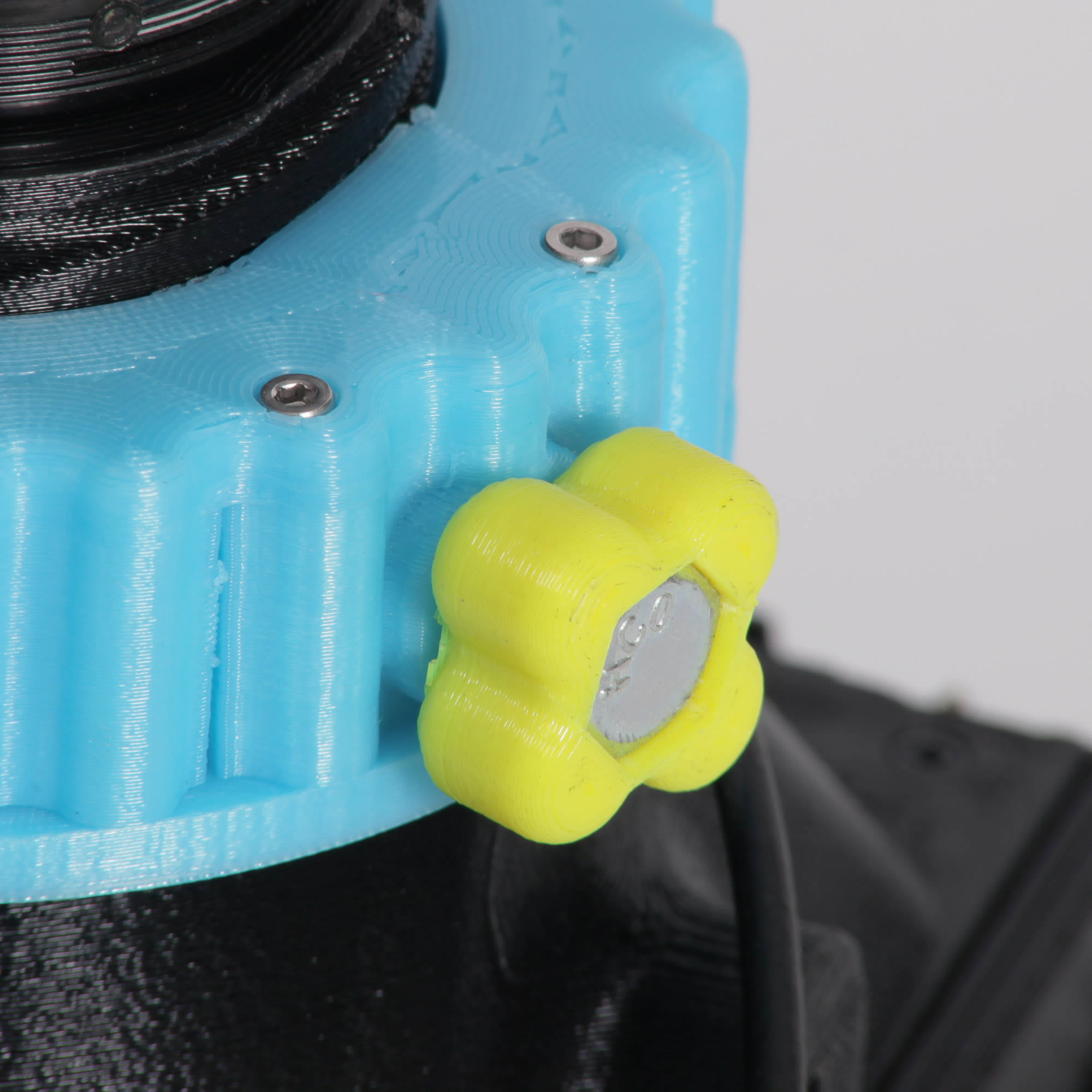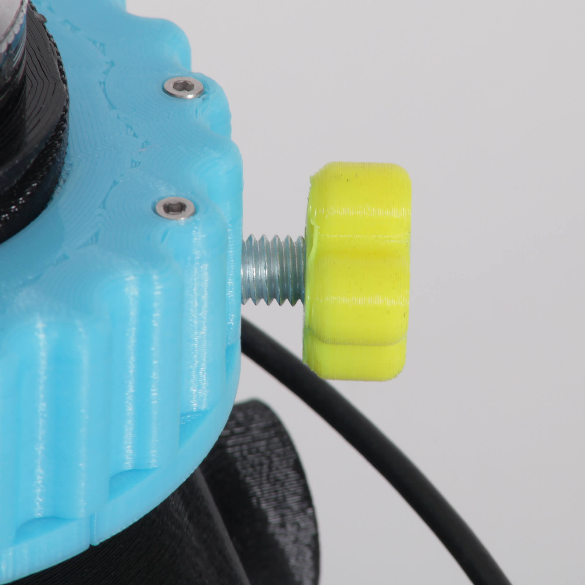 Another improvement is the use of metal screws in this model, not that there are all that many. There is just one lock screw focusing tab, so you can lock the focus down at any point and when unlocked, use the screw as a focus tab. I also use a bunch of M3 hex machine screws to hold all the parts together nice and tightly.